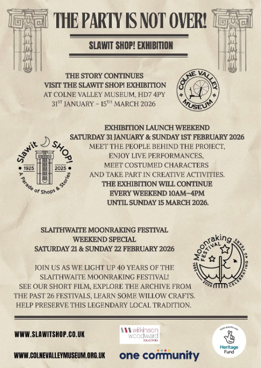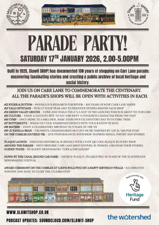 Slawit SHOP celebrates 100 years of an iconic parade of shops on Carr lane and aims to explore their social and economic history and that of retail in Slaithwaite by preserving and revitalising our community’s heritage.